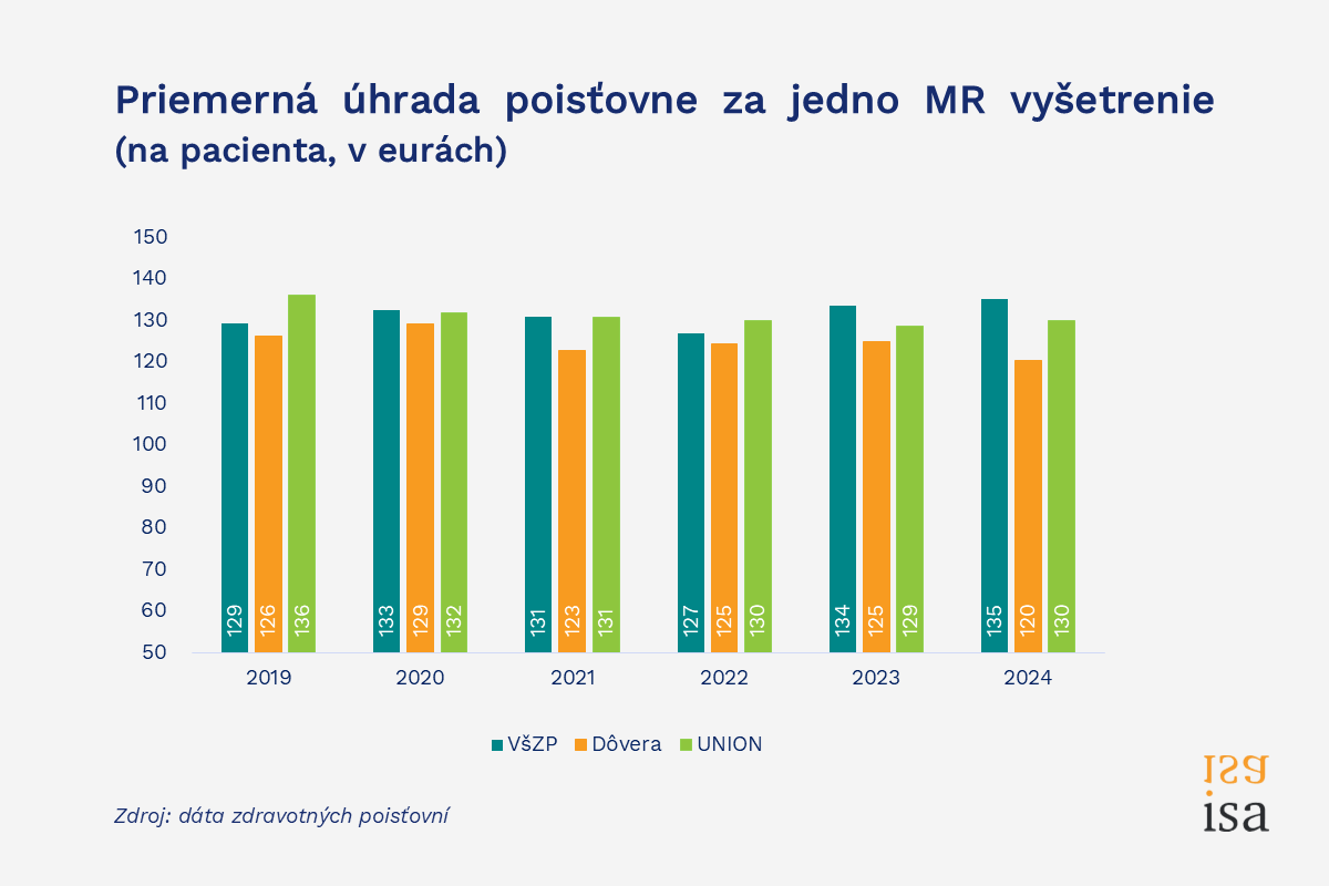 - Zmluvné úhrady a objemy výkonov Všeobecnej zdravotnej poisťovne (VšZP), ktorá má dominantný podiel na trhu (61 % MR vyšetrení), vychádzajú z historických finančných limitov, nie z reálnej potreby regiónov.